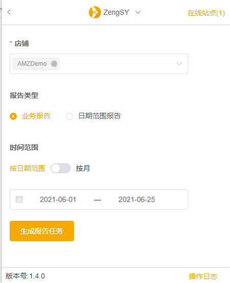 目前支持業務報告、日期范圍報告等。