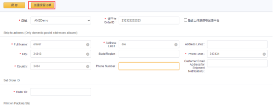 創建一個保留訂單(只創建不發貨)。